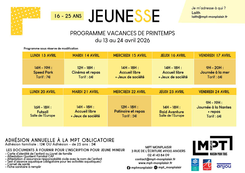 Pour les projets collectifs ou individuels, un projet citoyen, de loisirs, etc. Une question scolarité, professionnelle, santé, vie quotidienne. Toute l’équipe jeunesse est disponible pour t’accompagner dans la mise en place de TES projets !